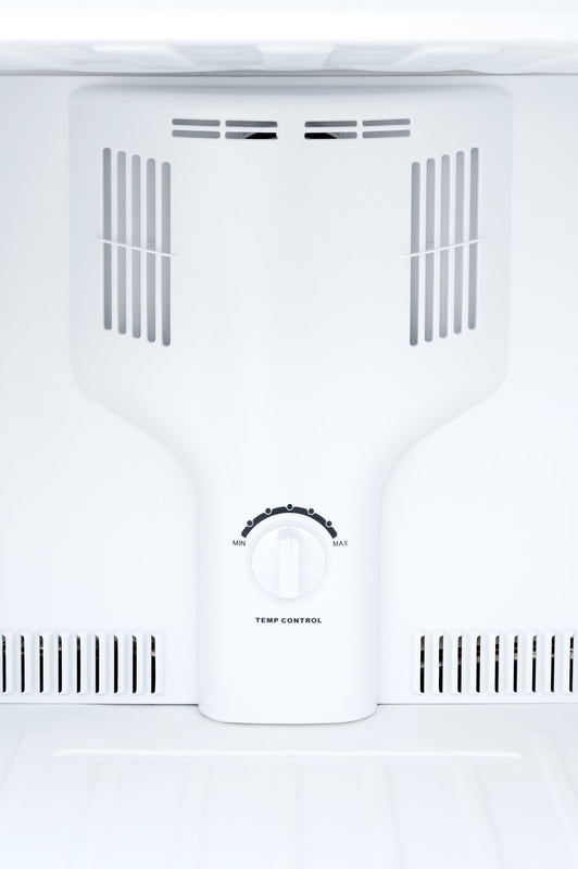 This is a 10.1 cu ft. top mount refrigerator with electronic controls, adjustable glass refrigerator shelves, reversible doors, clear door bins, gallon storage door bins, a clear crisper drawer, a full-width glass freezer shelf, and 2 freezer door bins. It has a color-coordinated pocket door handle. Dimensions: 58.5" H x 23.6" W x 25.6" D.