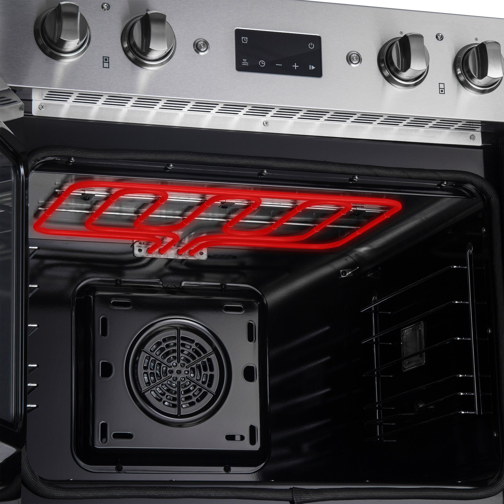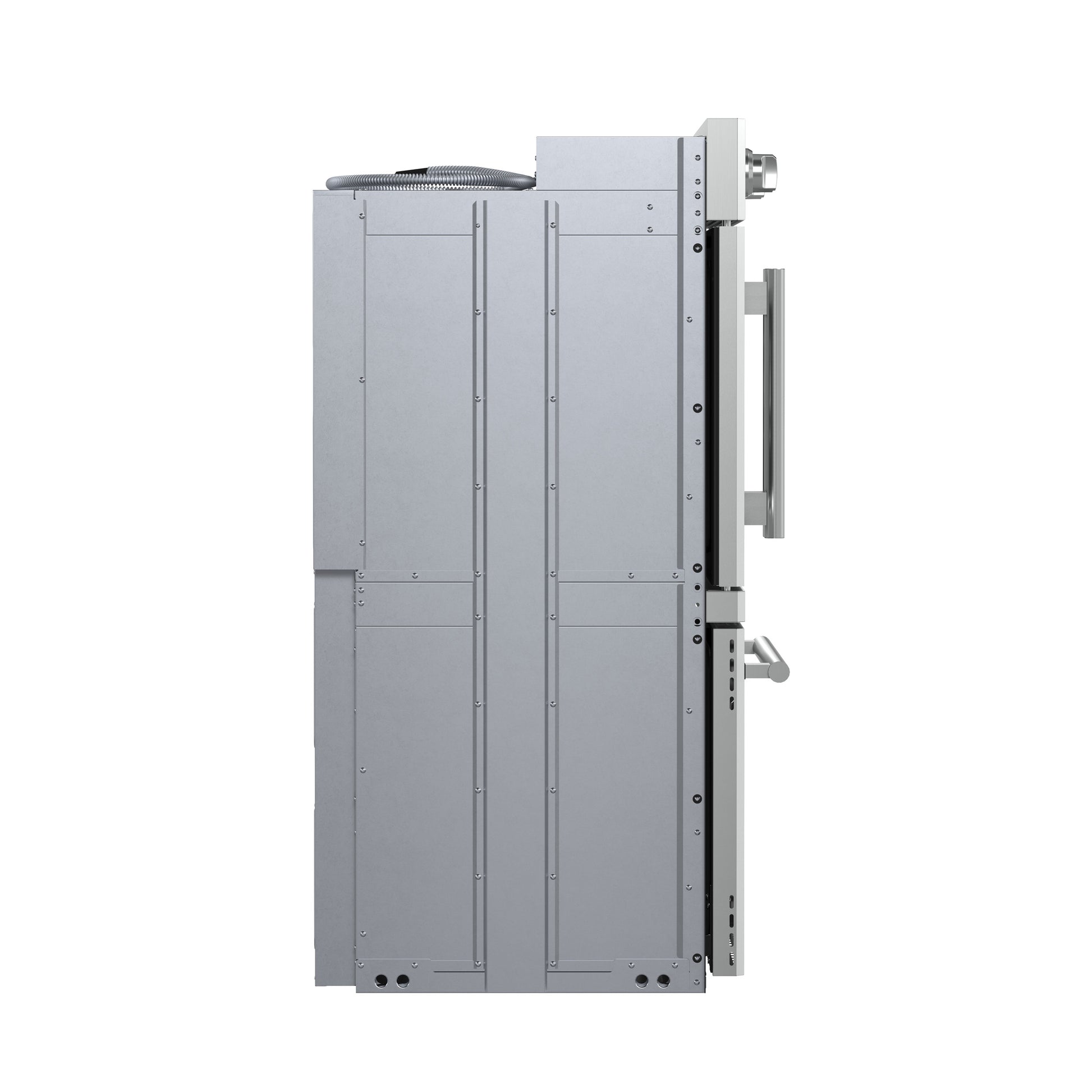 The Forno Asti 30” Double Wall Oven combines elegance and performance with a French-door top oven for effortless, one-handed access. Featuring 7.36 cu. ft. of true convection cooking, it ensures even heat distribution for perfect baking results. The built-in air-fry function delivers crispy textures with minimal oil, while precision control knobs provide a hands-on approach to cooking. A digital LED display offers seamless management of the timer and Sous Vide function, enhancing precision and versatility. Designed for convenience, the self-cleaning mode simplifies maintenance, keeping your oven spotless with minimal effort.