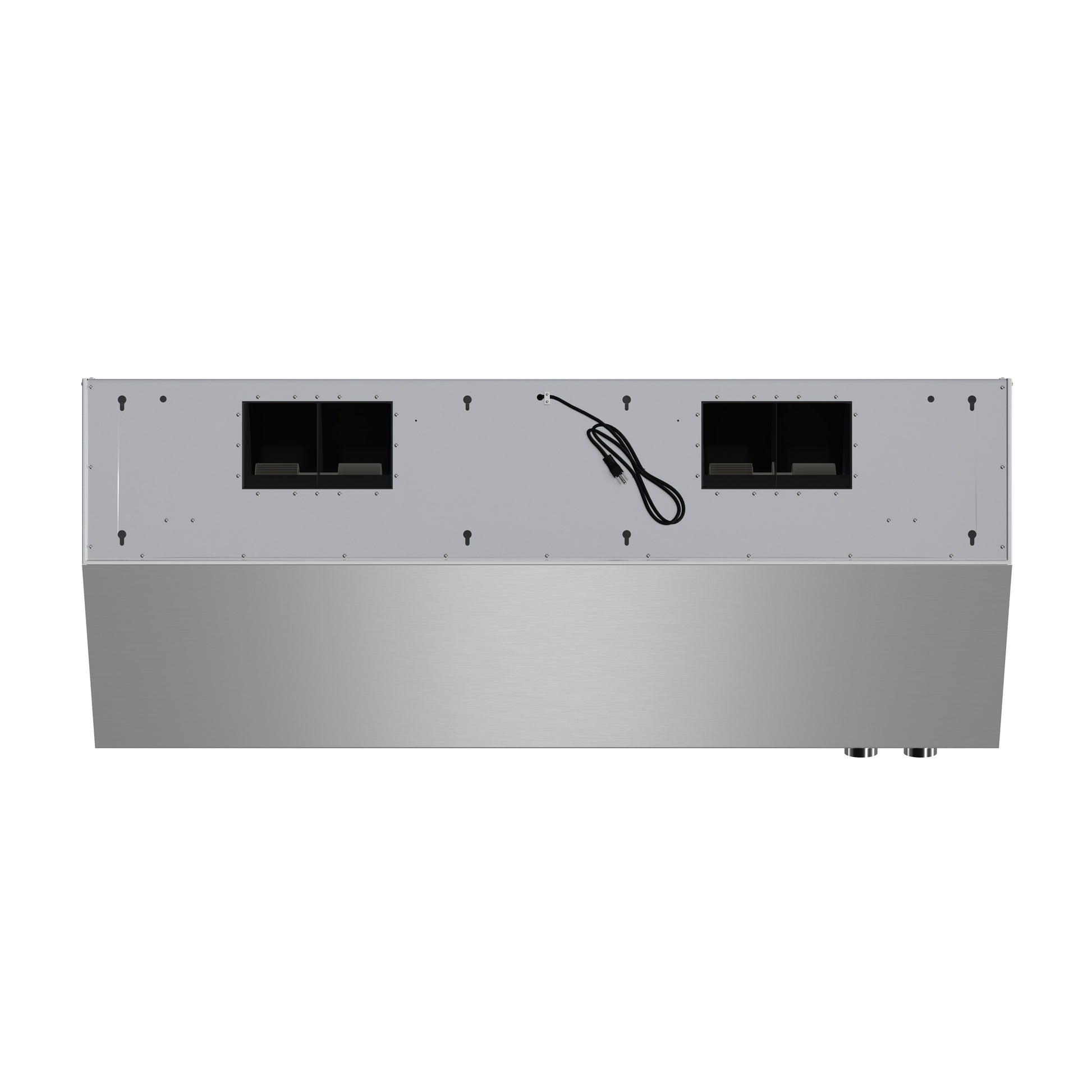The Forno Biagio 60" Wall-Mounted Range Hood combines efficient smoke and odor removal with a modern stainless steel finish. Its 1200 CFM motor ensures strong yet quiet performance, while heavy-duty, dishwasher-safe baffle filters trap grease for easy cleaning. Designed for 60" cooktops, it features a 3-speed fan, intuitive knob controls, and dimmable LED lighting for a well-lit, customized cooking experience. The power-off delay clears lingering steam, and its versatile installation allows for wall-mounted or under-cabinet setups.