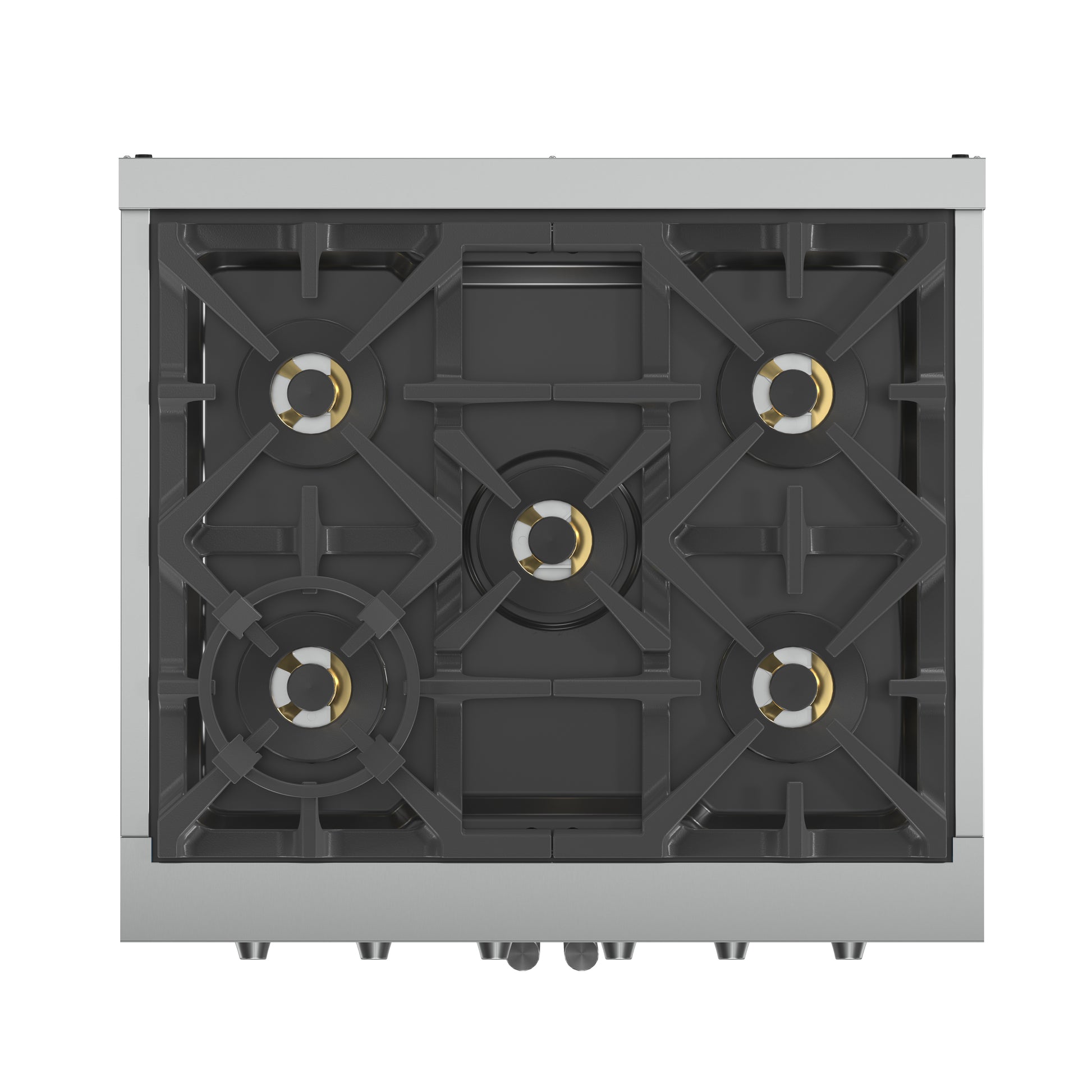 The 30 Inch Forno Capriasca French Door Gas Range blends professional style and durability with its stainless-steel design. Featuring unique french doors for extra oven access space, a rangetop delivering 100,000 BTU with 5 dual-ring brass burners, and heavy-duty cast iron grates over a recessed enamel cooking surface for easy cleaning. The 4.32 cu. ft. gas oven with 30,000 BTU output, convection fan, and 3-layer glass oven door window ensures precision cooking. Includes a LP conversion kit, 3 telescopic oven racks, wok-ring, reversible griddle, rotisserie kit, air fry basket and drip pan. Zinc-coated metal knobs with bezel rings add a touch of elegance.