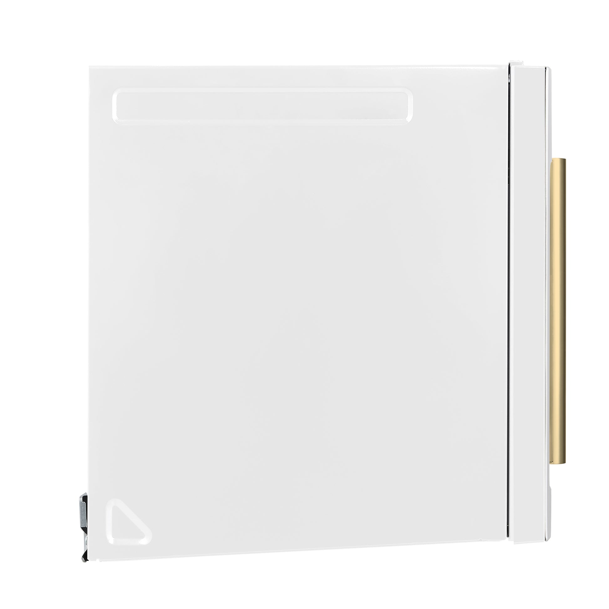 The Fornace 30 Inch Over the Range Microwave in White combines microwave, convection, and speed cooking functions in one versatile appliance. Designed to be smudge-resistant, it features a sleek digital display, LED lighting, and an easy to clean washable filter. The touchpad controls and auto menu programs make everyday cooking simple, while multistage and cook time options offer precision. A durable plastic handle in antique brass ensures a comfortable, cool to touch grip that’s built for everyday use. With vertical, horizontal, and recirculating air discharge options, plus a powerful two-speed blower system (105/300 CFM), this undercabinet or wall-mounted microwave is a modern solution for efficient and reliable cooking.