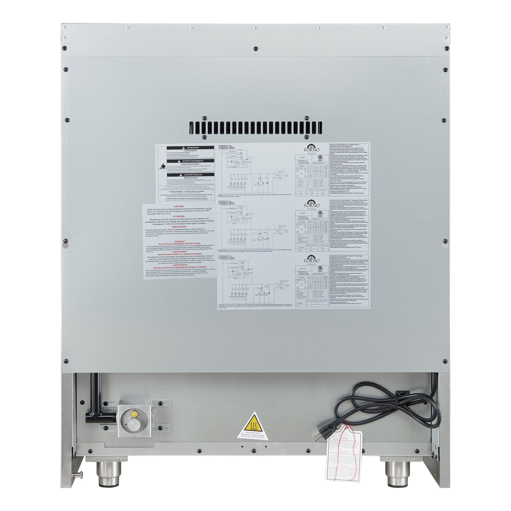 The Forno Galiano 30" French Door Gas Range in white brings professional styling and performance into your home kitchen at an affordable price. Enjoy effortless access to your oven with French doors that offer an extra 12 inches of space. The cooking surface has four sealed burners with a total output of 68,000 BTU - one of which is a 20,000 BTU dual-ring burner that can reach a precise simmer of 1,000 BTU. Cast iron grates ensure stability over the cooktop, making spills easy to clean. With a powerful 30,000 BTU output, the 4.32 cu. ft. oven features a sleek black enamel interior and a convection fan for quick, precise cooking. The 3-layer glass oven door lets you effortlessly monitor your meals. Zinc-coated metal knobs with bezel rings are built to stay beautiful for years, adding a touch of lasting elegance to your kitchen. Two electroplated oven racks and an LP conversion kit are included.
