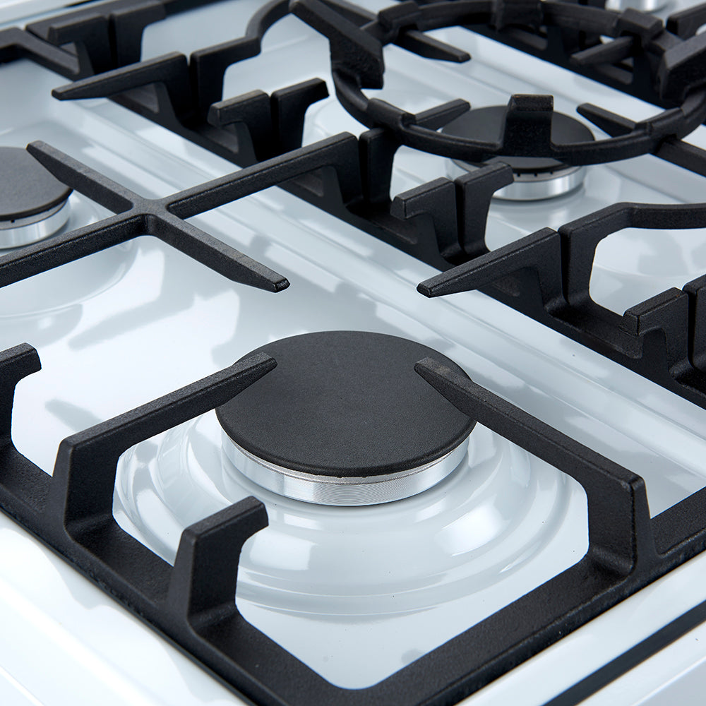 The Forno Leonardo 30" gas range in white combines modern design with professional-grade performance. Its powerful cooktop delivers 39,500 BTU across continuous cast iron grates, providing stability and effortless cookware movement. The deep recessed black enamel surface simplifies cleanup, keeping spills contained. The spacious 5.0 cu. ft. convection oven offers 22,500 BTU of broil and bake power, with two adjustable rack heights and a high-powered convection fan for even heat distribution. Designed for reliability, the auto re-ignition feature ensures consistent performance, while natural gas compatibility and an included propane conversion kit provide flexible installation options.