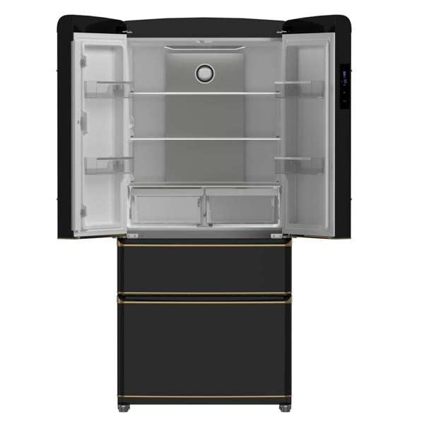 Transform your kitchen with the Forno Luigi 33" French Door Refrigerator, offering 18 cu.ft. of frost-free storage. With a sleek black finish and antique brass handles, this Energy Star Certified refrigerator combines vintage charm with modern function. The fridge features 12 cu.ft. of fresh food space, adjustable glass shelves and door bins, while the 6 cu.ft. freezer provides easy access and ample storage. Super Cool and Super Freeze functions lock in freshness, and bright LED lighting ensures visibility. The no-frost technology eliminates the hassle of maintenance, and the durable stainless steel back panel and antique brass-trimmed details complete the stylish design. A perfect blend of elegance, efficiency, and affordability.