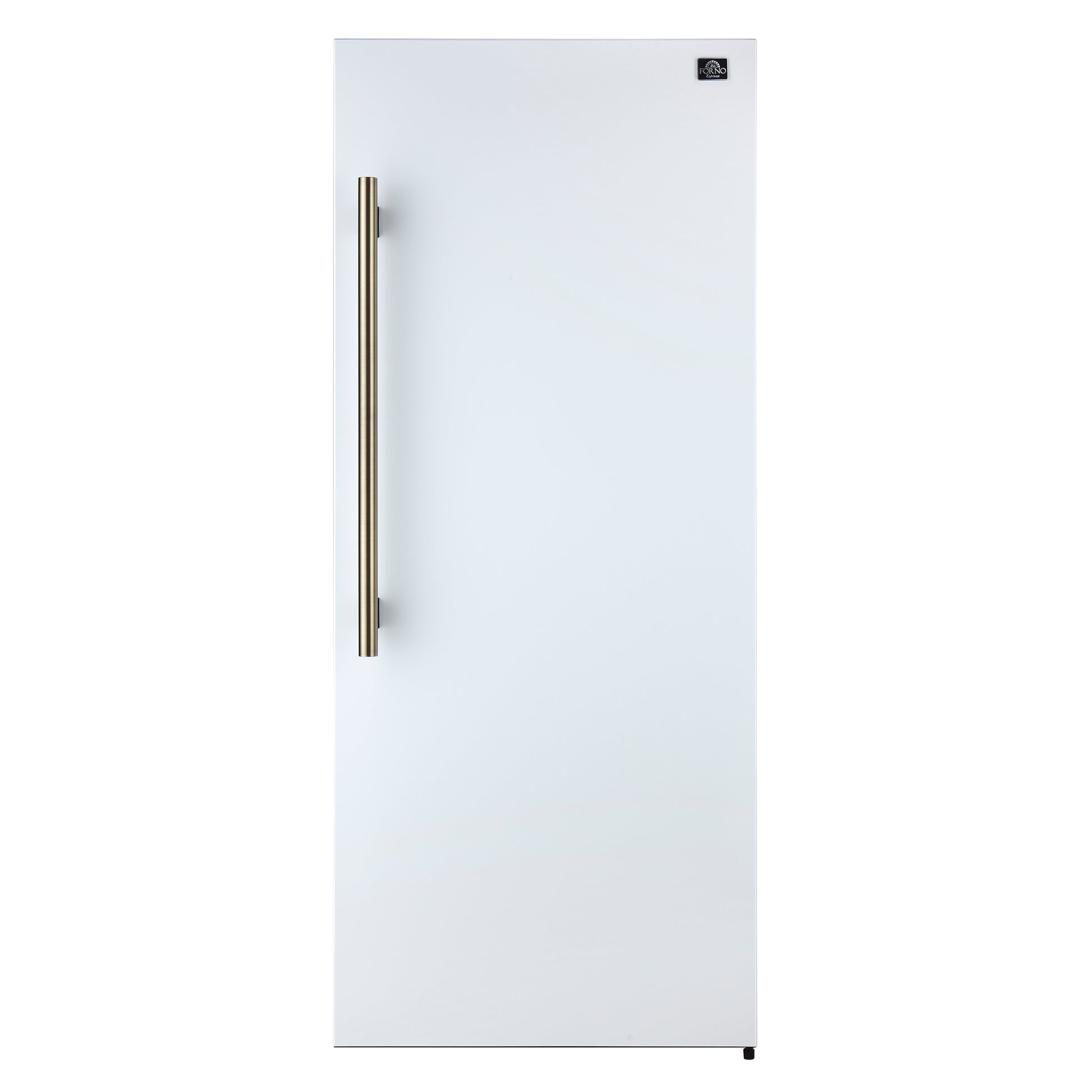 Forno Maderno 28-Inch Convertible Freezer/Refrigerator in White with Antique Brass Handle, 13.6 cu.ft. Right Swing