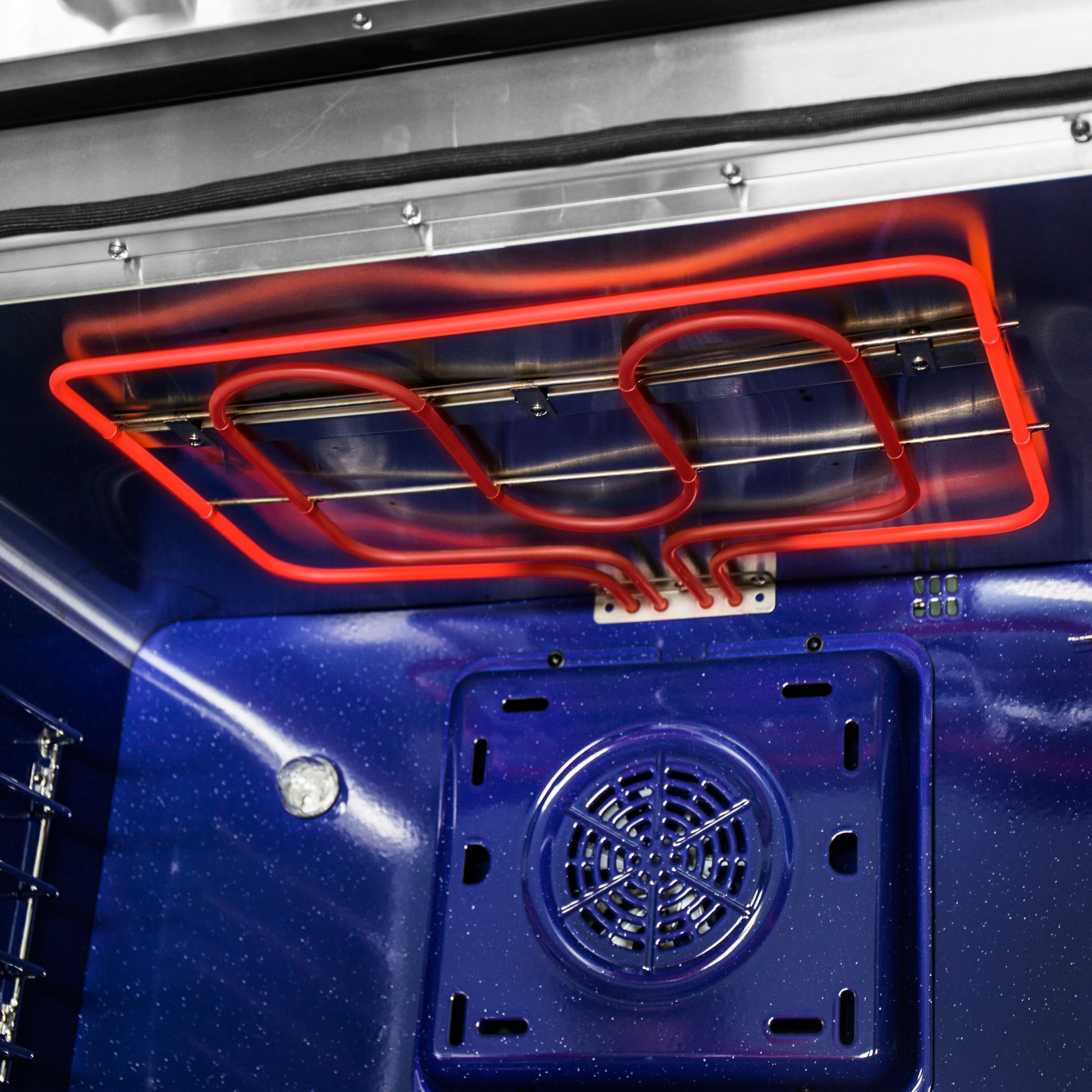 The Forno Massimo 60 Inch dual fuel range harmonizes professional style and 304-grade stainless steel durability. Its 10 sealed burners, totaling 142,000 BTU, include two precision 20,000 BTU dual-ring burner that can simmer at 1,000 BTU. Continuous cast iron grates ensure stability on the enamel surface, allowing you to effortlessly move pots and pans on and off heat. Equipped with two true convection ovens boasting a combined 8.64 cu.ft. capacity and a total output of 12,600 Watts, this range offers ample power for baking, roasting, and broiling. The interiors are adorned with impressive blue enamel, ensuring easy cleaning, while the 3-layer glass oven door window provides optimal heat retention and a clear view. Included with the range are 4 fully telescopic easy-access stainless steel oven racks, 2 reversible griddles, an air fryer basket with a drip pan, a wok support, an LP conversion kit and a NEMA 14-50P power cord for an easy installation. Not to mention, the zinc-coated metal knobs with bezel rings are designed to maintain their beauty for years to come, adding a touch of sophistication to your kitchen space.