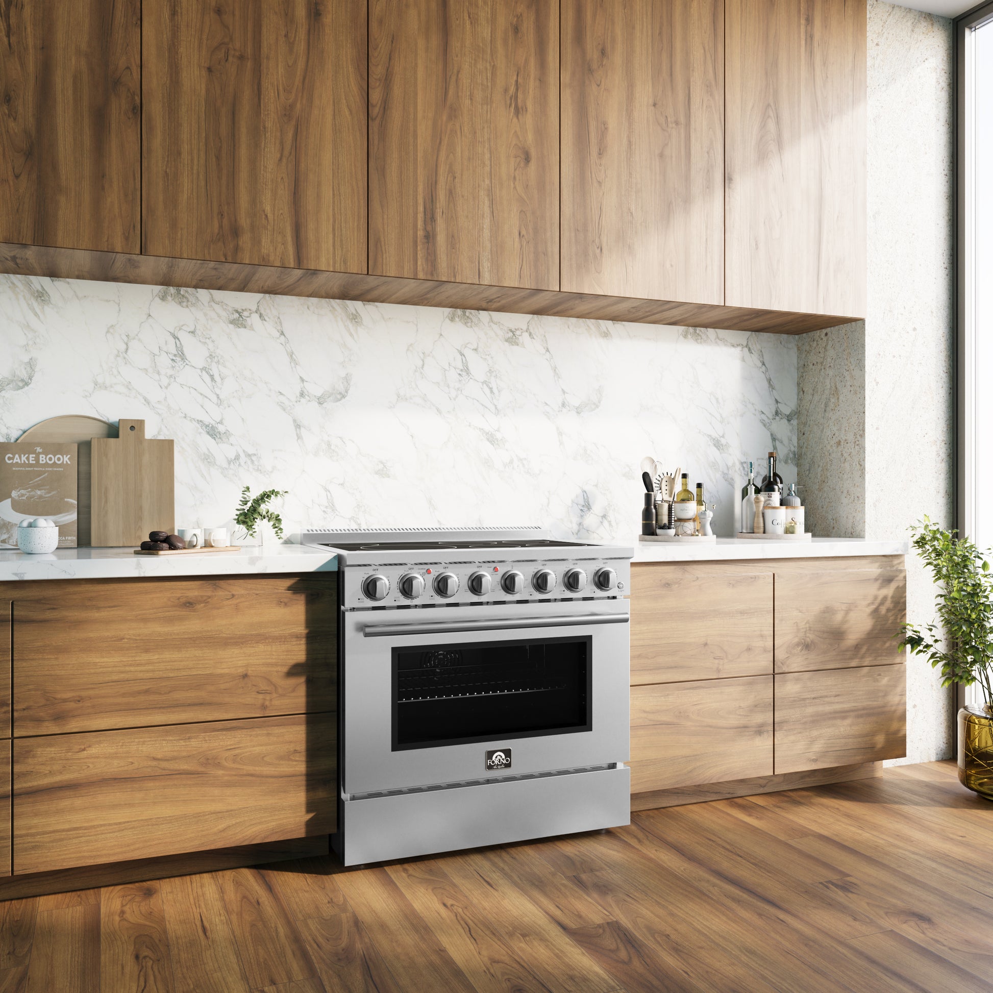 Forno Paolo 36 Inch Freestanding Electric Range, Stainless Steel, 5.44 cu.ft, True Convection Oven, Energy Efficient