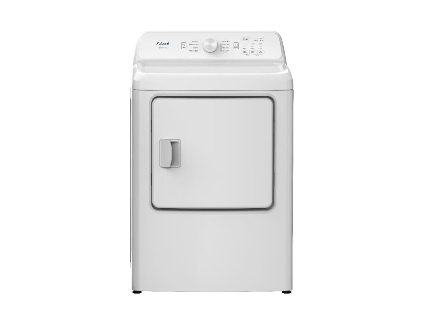 This Wizard super capacity electric dryer (model WDE70M8AW) offers a 7.0 cu. ft. capacity. It features a moisture sensor, 8 drying cycles, and 4 dryness levels. Additional features include a reversible door, wrinkle prevent option, and 3-way venting for installation flexibility. This economical dryer comes with a 1-year parts & labor warranty from Crosley and is available in White.