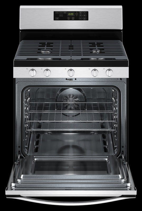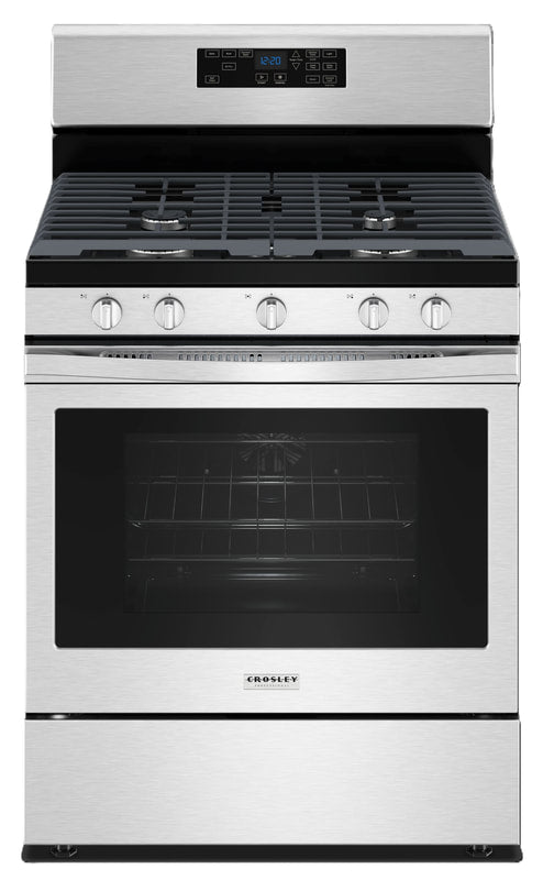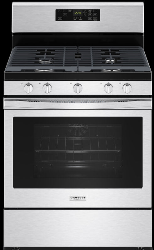 Crosley Professional Free-standing Gas Range - Stainless Steel ZRGW3488RS. FEATURES. 5.0 cu. ft. oven capacity. Self-clean oven. Convection Cooking with Air Fry. Large Window. 2- High Power 15,000 BTU burner. 9,500 BTW burners. 5,000 BTU Precise Simmer burner. 8,000 BTU Oval Center burner. Continuous Coated Cast Iron grates. Sealed cooktop burners. In-oven broil. AVAILABLE COLORS. Stainless Steel. PRODUCT DIMENSIONS. Height: (inches) 46.88. Width: (inches) 29.88. Depth : (inches) 27.88